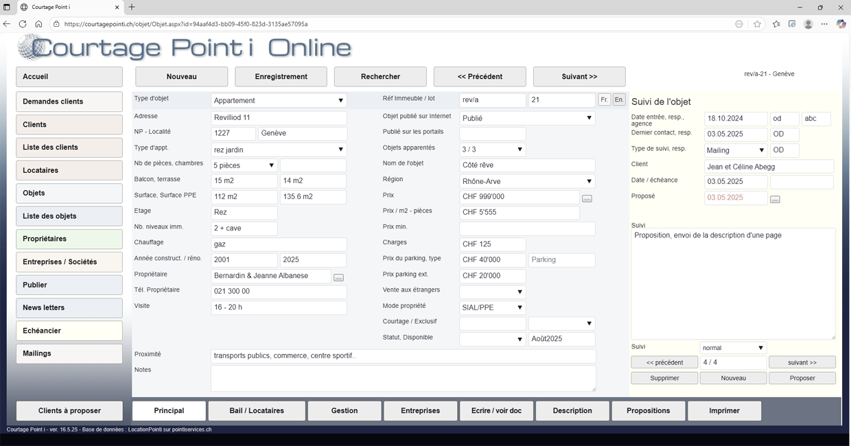 Le formulaire des objets contient toute la description technique ainsi que les plans et les photos.